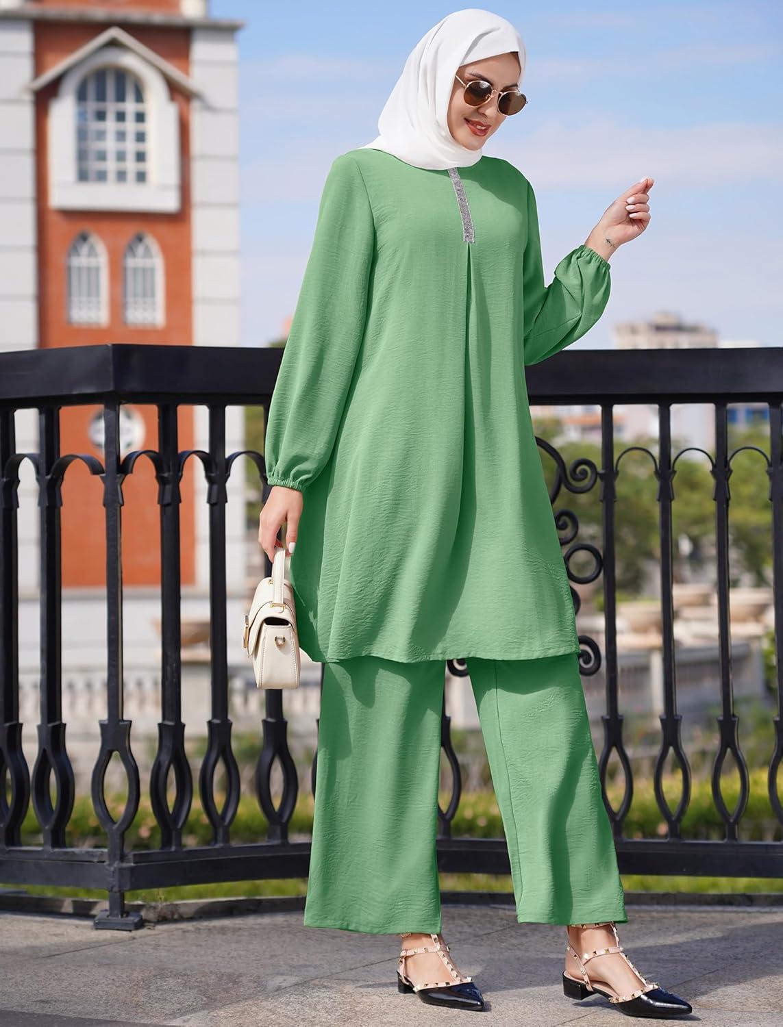Be the first to review “IDOPIP Abayas Dress for Women Muslim Outfits Long Sleeve Islamic Dress Shirt with Pants 2PCS Dubai Prayer Casual Clothes Sets(Green)” Cancel reply