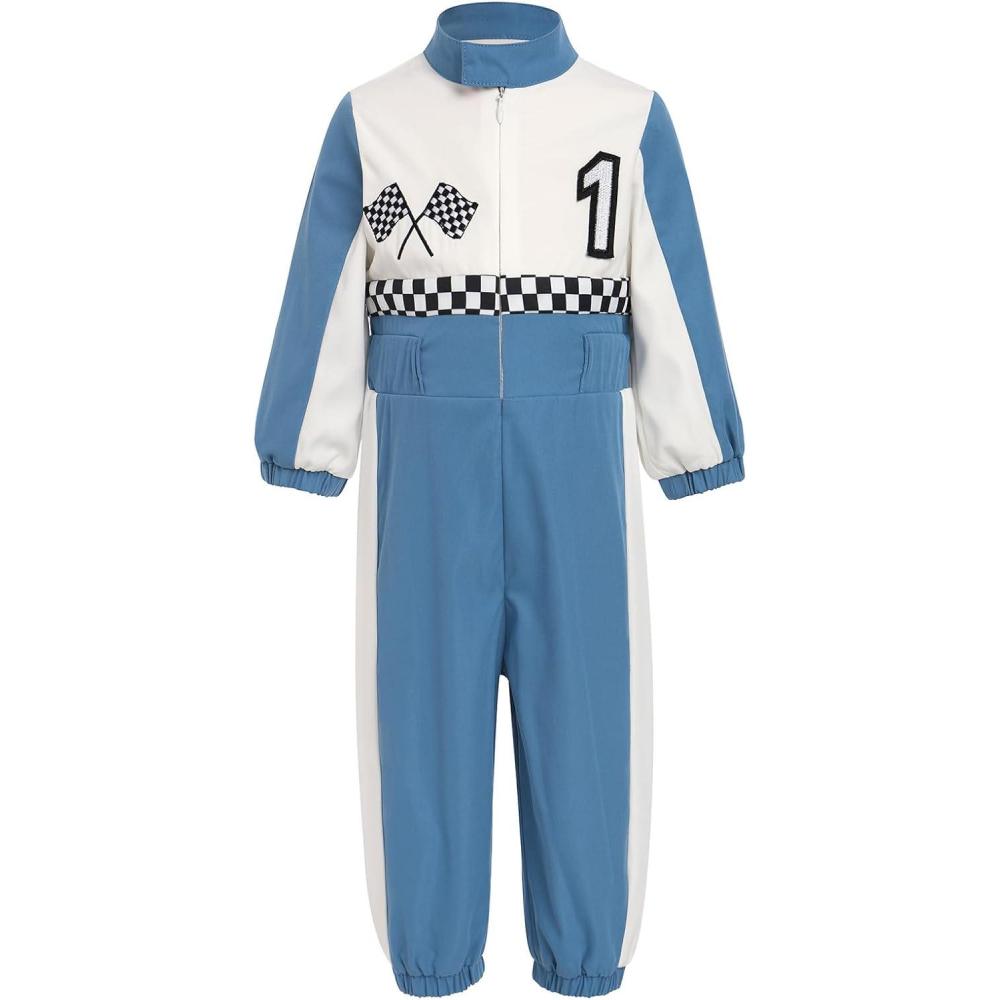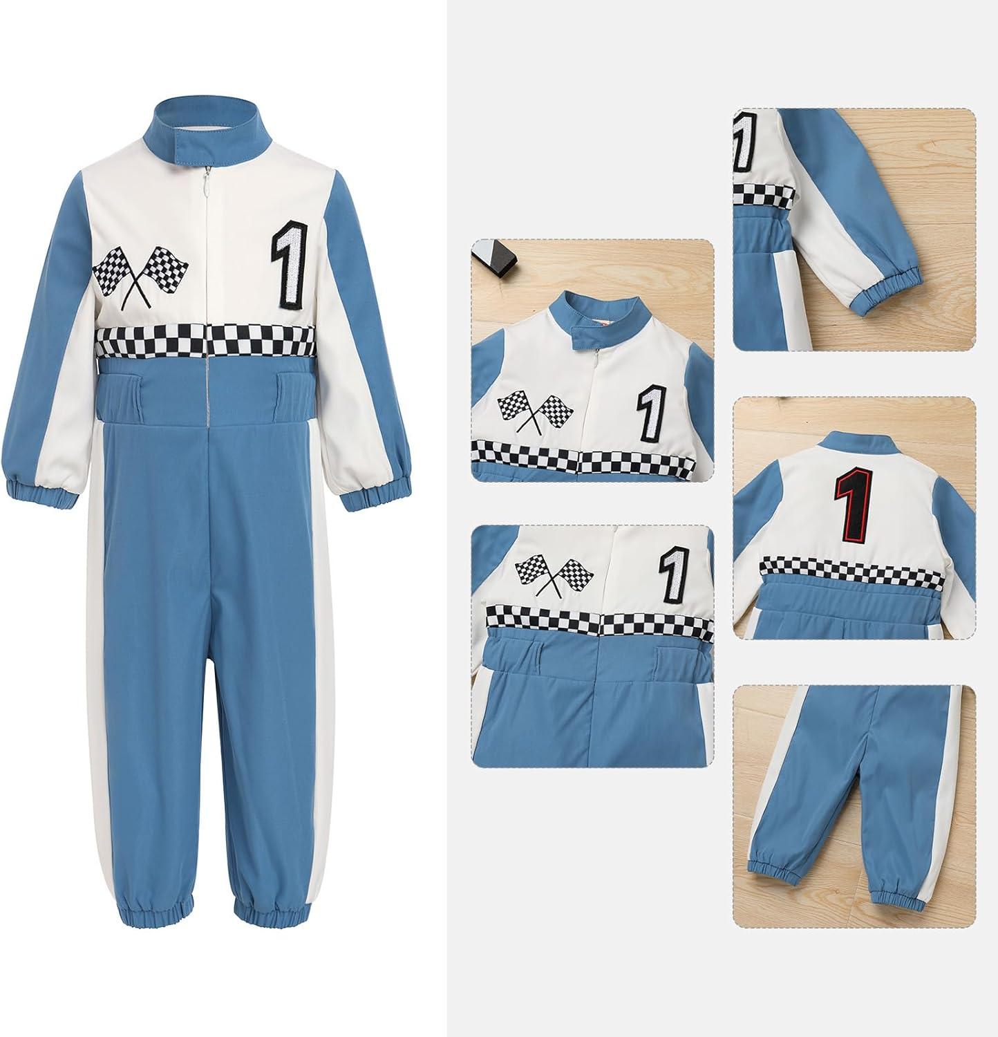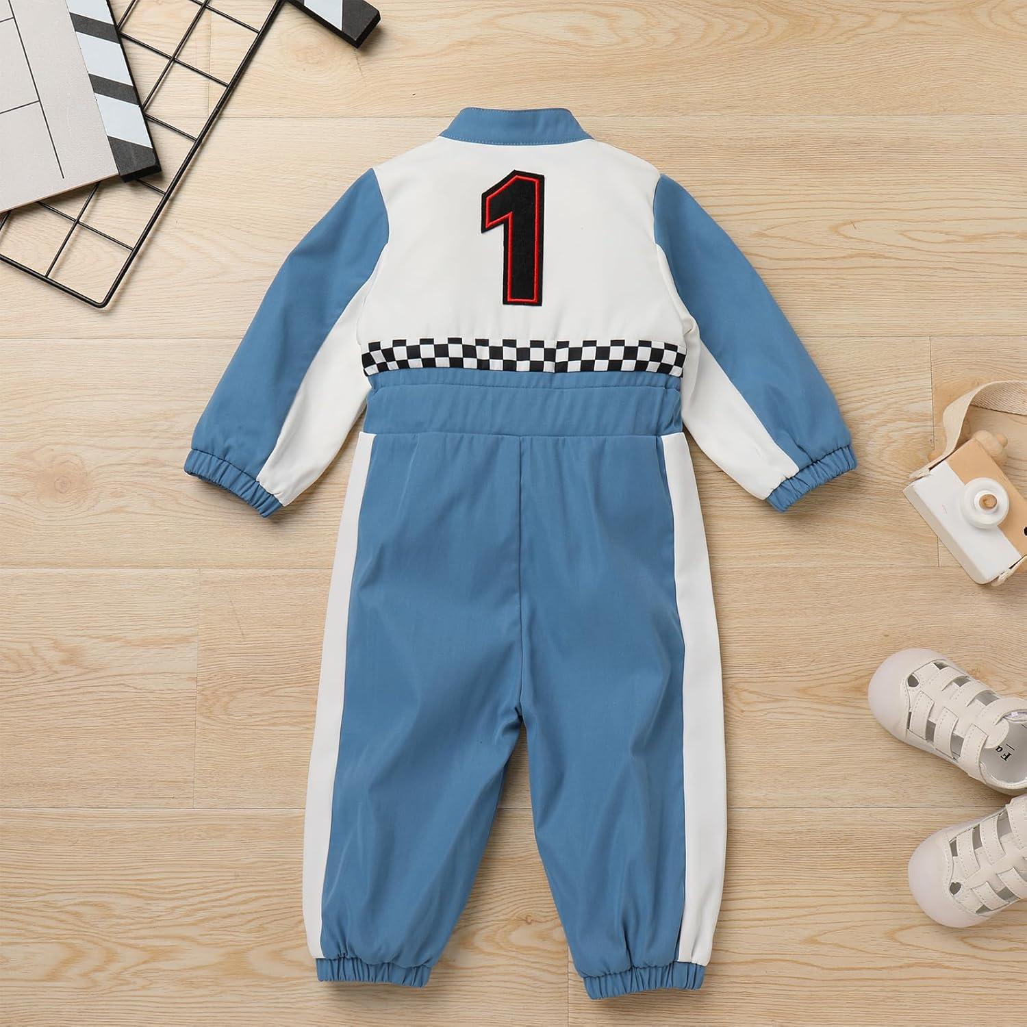 IDOPIP Baby Boys 1st 2nd Birthday Outfit Race Car Driver Romper Girls Racer Jumpsuit Kids Racing Suit Toddler Dress up Outfit(Blue 1)