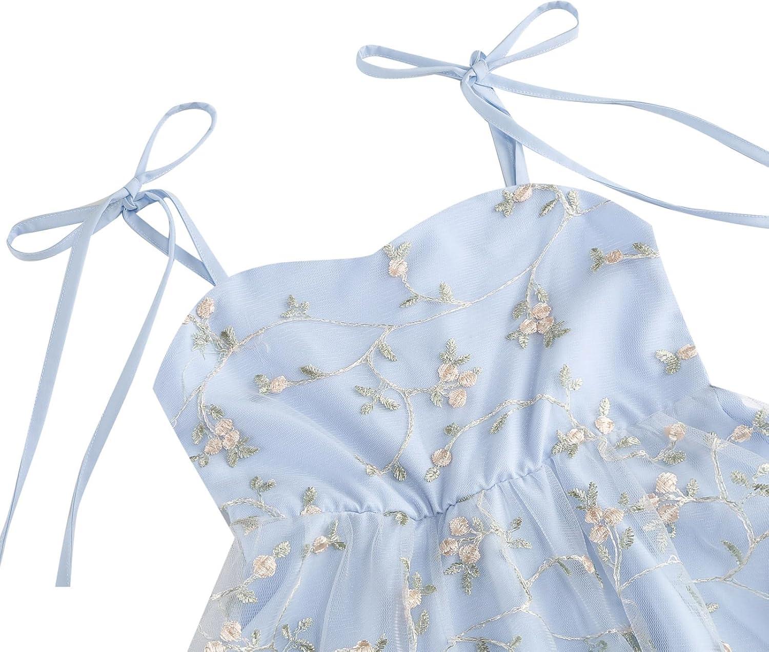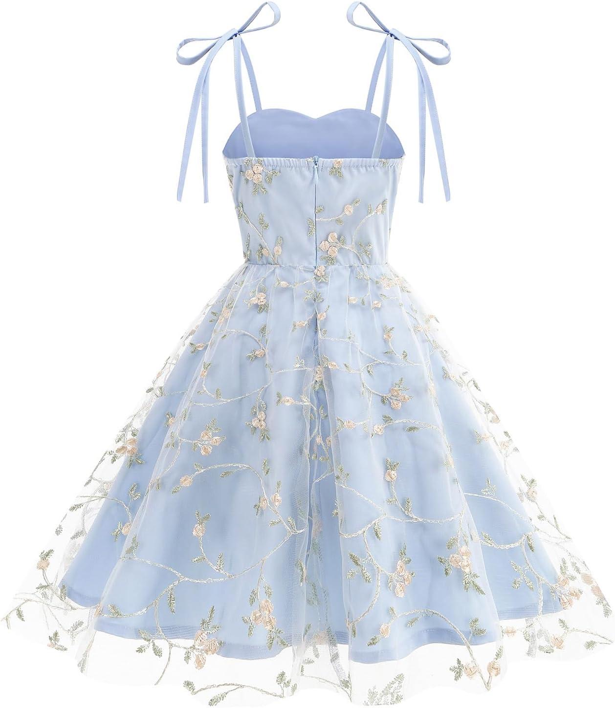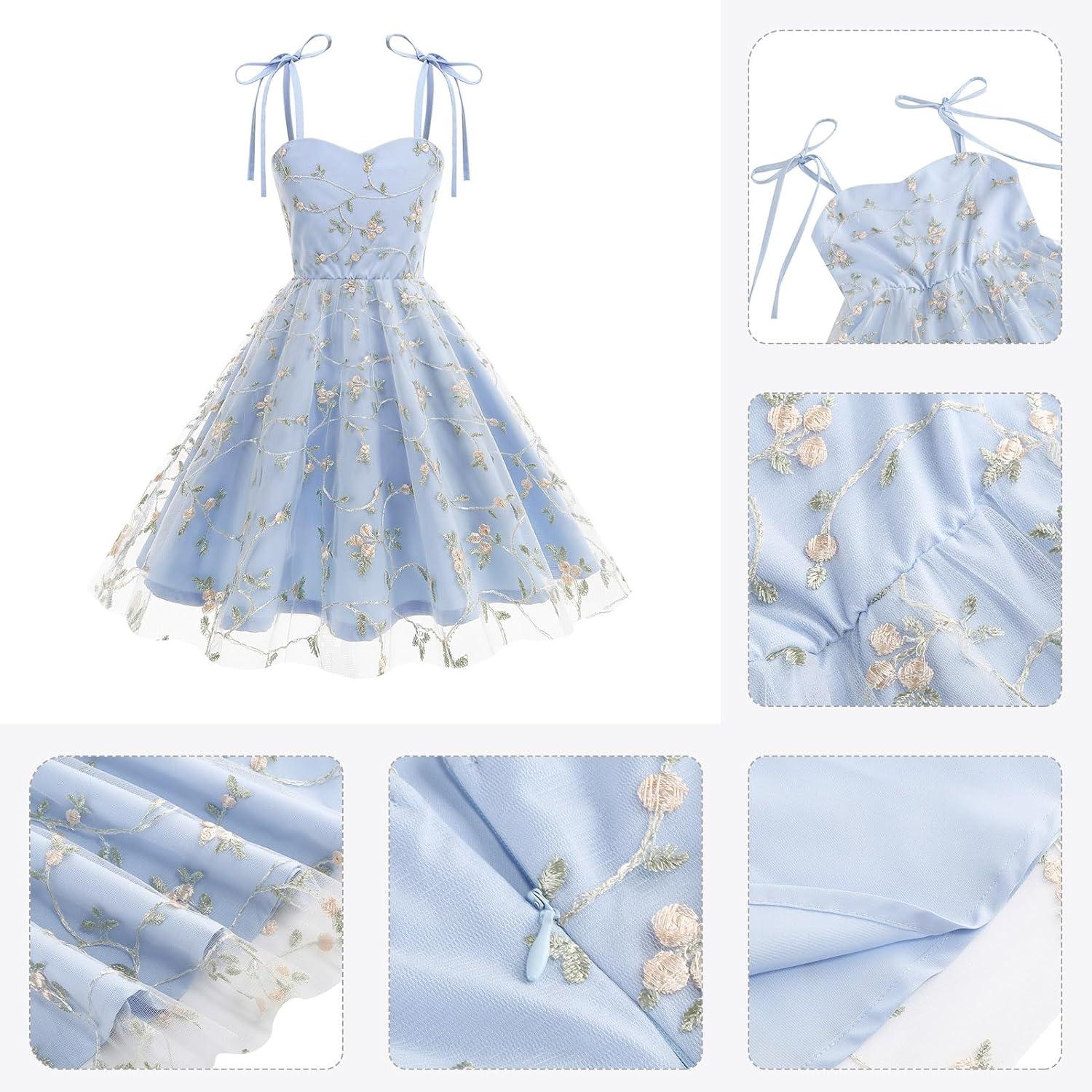 IDOPIP Embroidery Flower Girl Lace Dess for Kids Party Wedding Bridesmaid Tulle Dresses Princess Pageant Birthday Floral Gown(Blue)