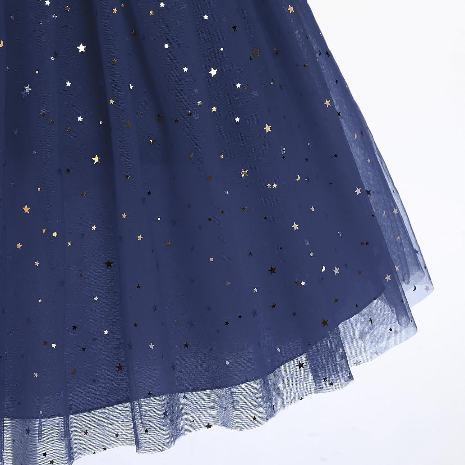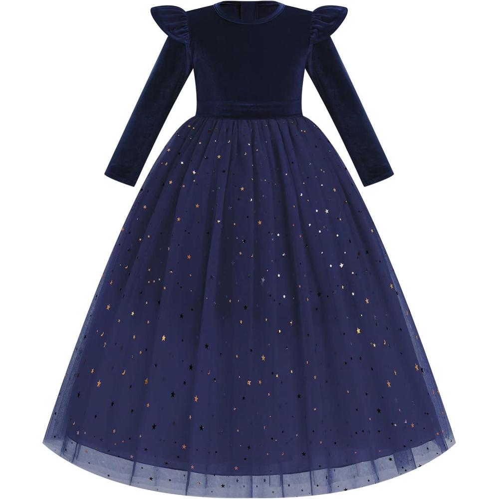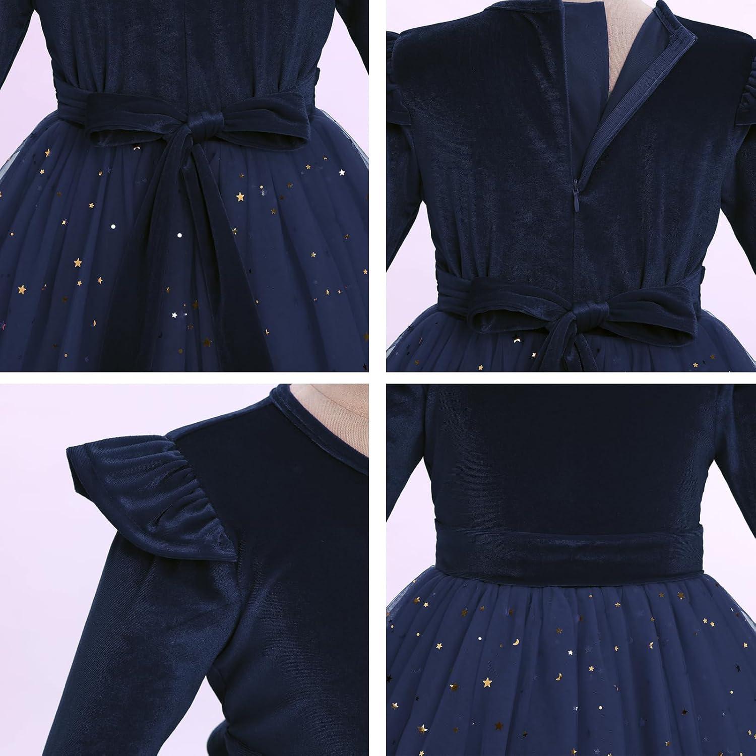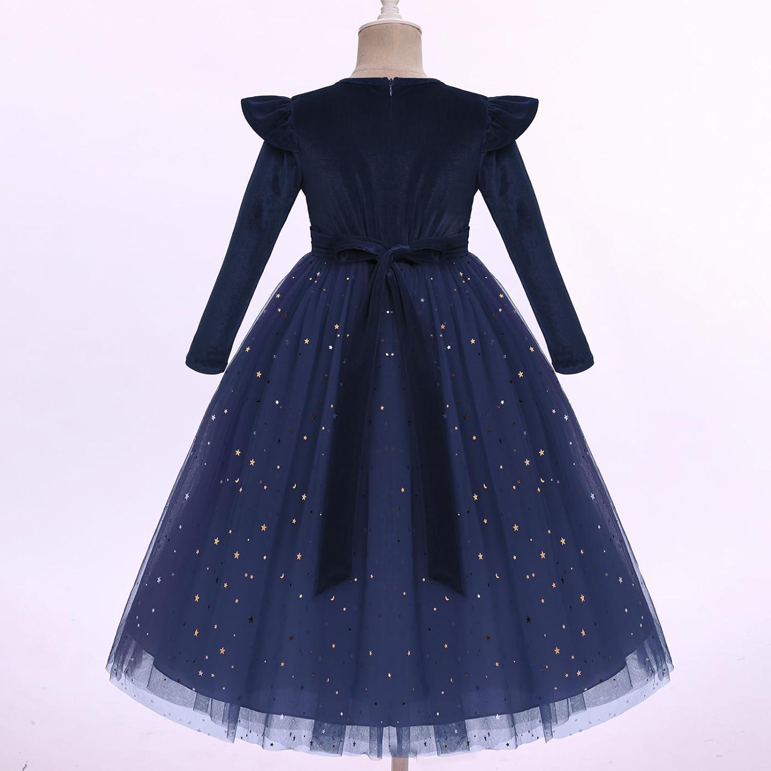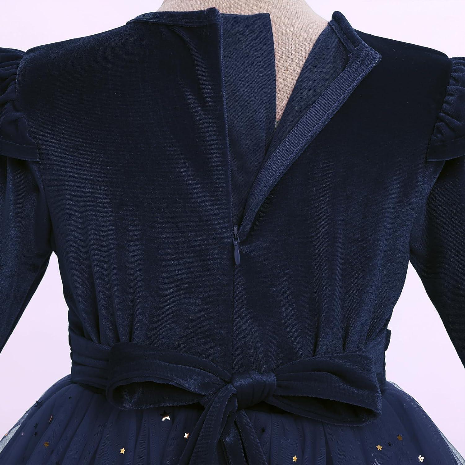 IDOPIP Embroidery Flower Girl Velvet Tutu Dress for Kids Princess Birthday Party Pageant Wedding Dresses Fall Winter Clothes(Royal Blue Stars)