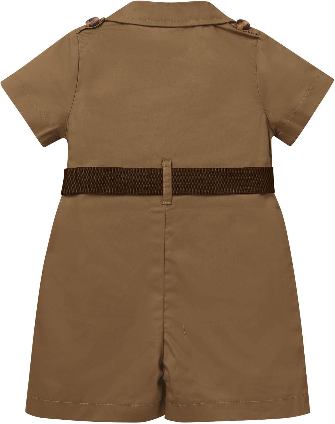 IDOPIP Girl Jungle Safari Outfit Wild Birthday Romper+Hat Jumpsuit Birthday Party Clothes Overall Shorts Photo Shoot Bodysuit(Brown)