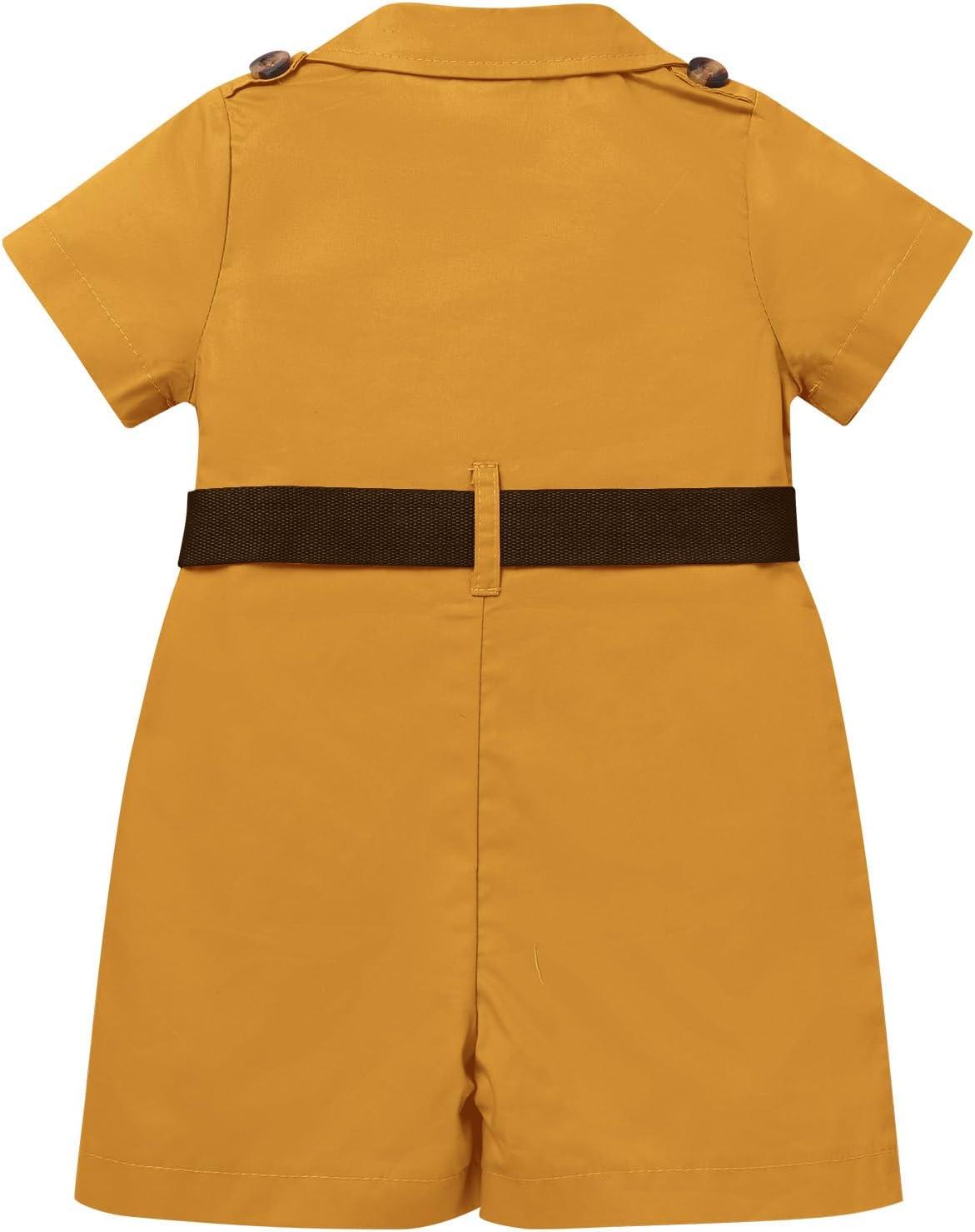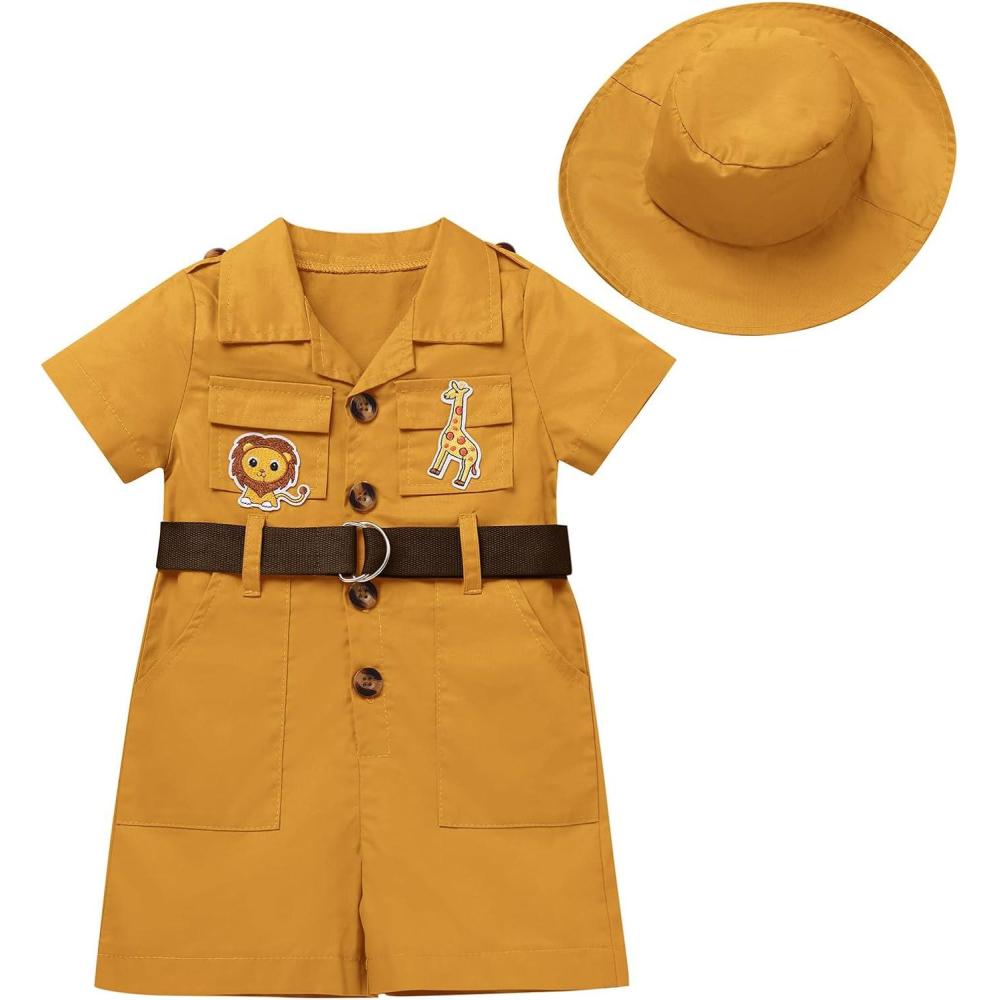IDOPIP Girl Jungle Safari Outfit Wild Birthday Romper+Hat Jumpsuit Birthday Party Clothes Overall Shorts Photo Shoot Bodysuit(Yellow)