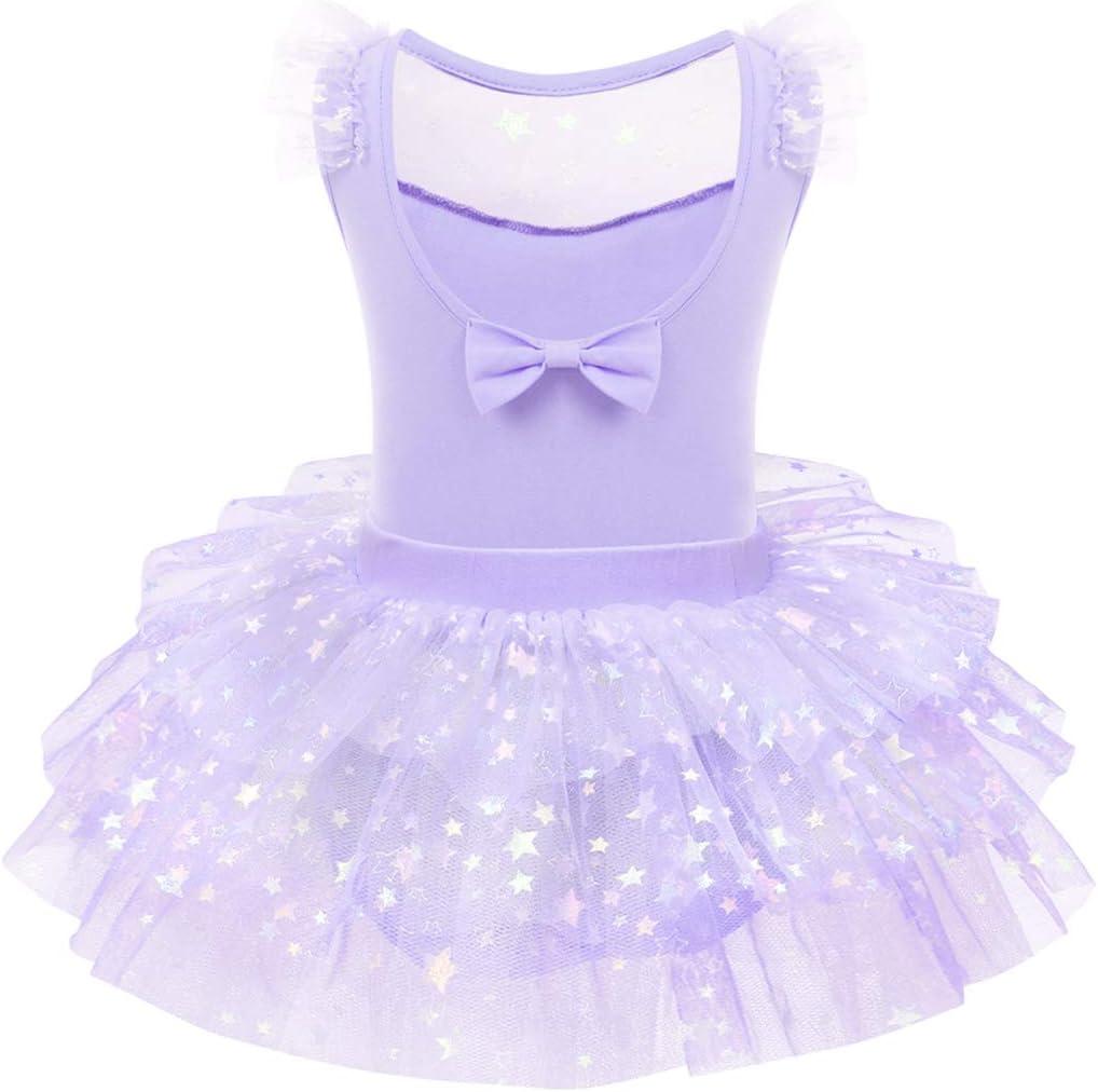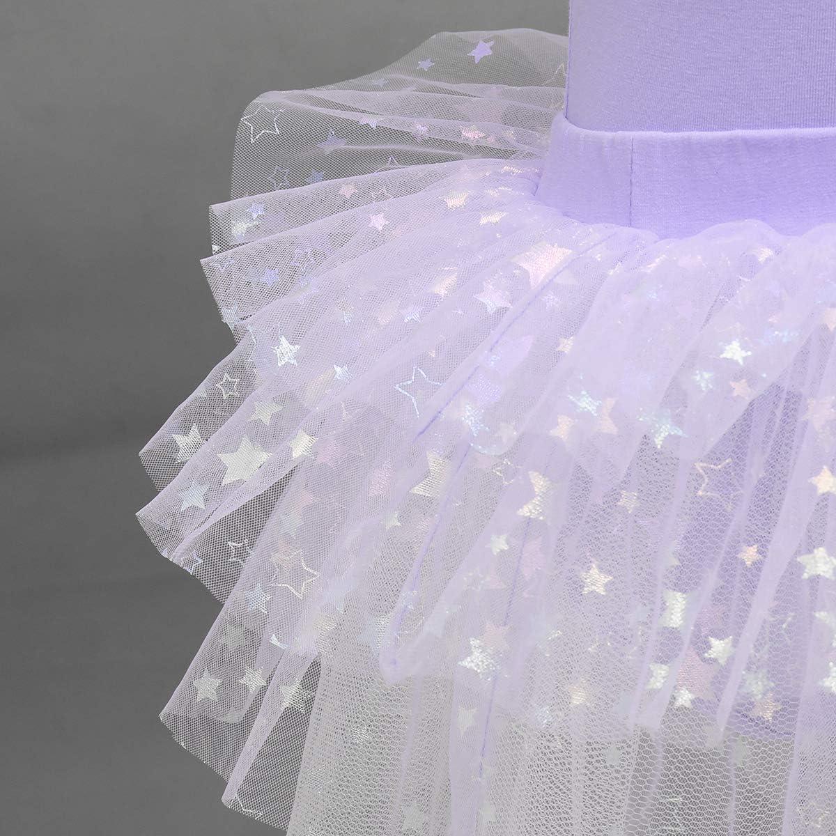 IDOPIP Girls Glitter Star Tutu Skirted Leotard Sequin Ruffle Sleeve Ballet Dance Dress Ballerina Dancewear Gymnastics Costume(Purple)