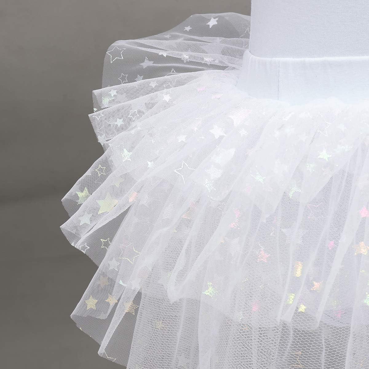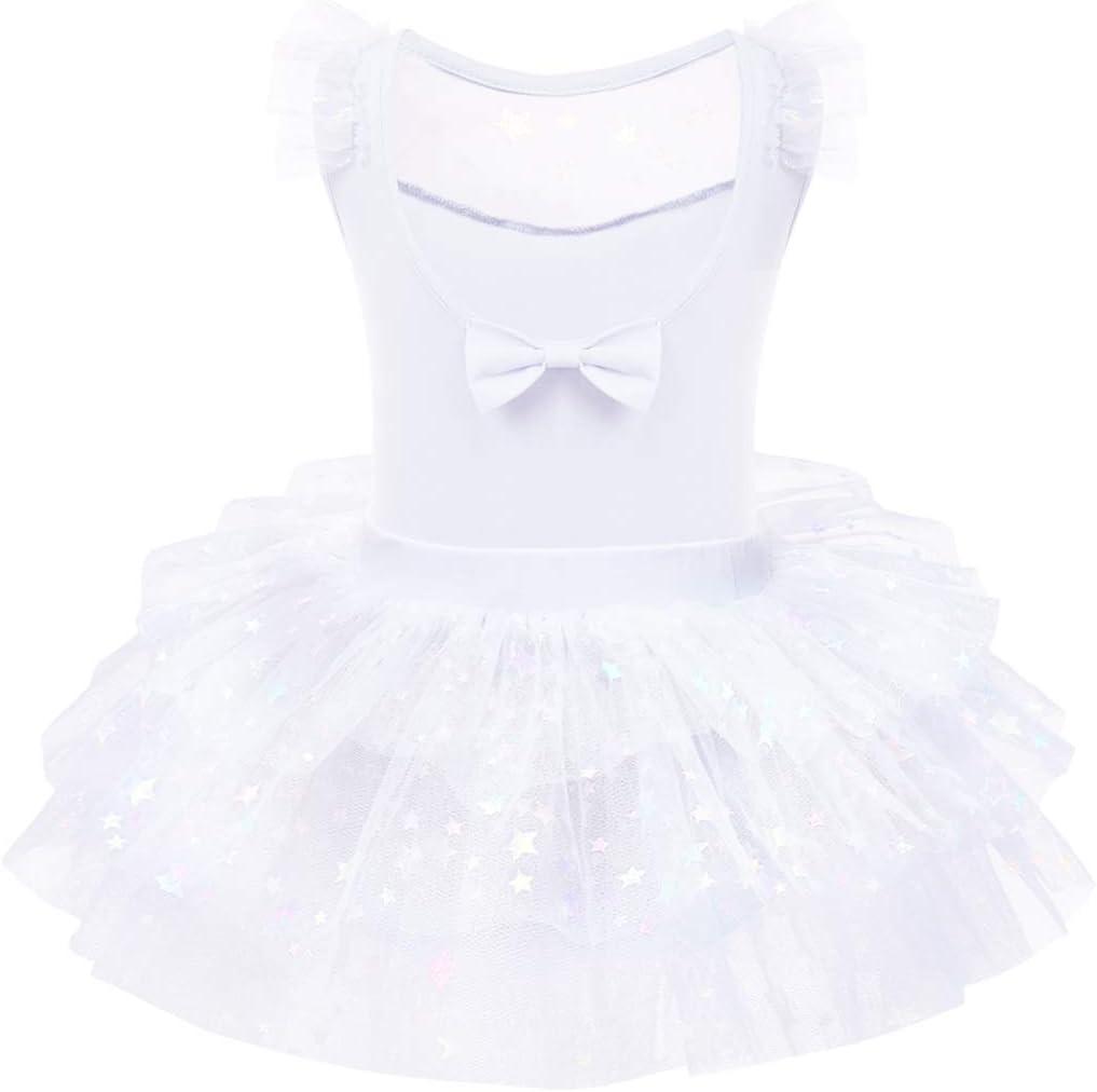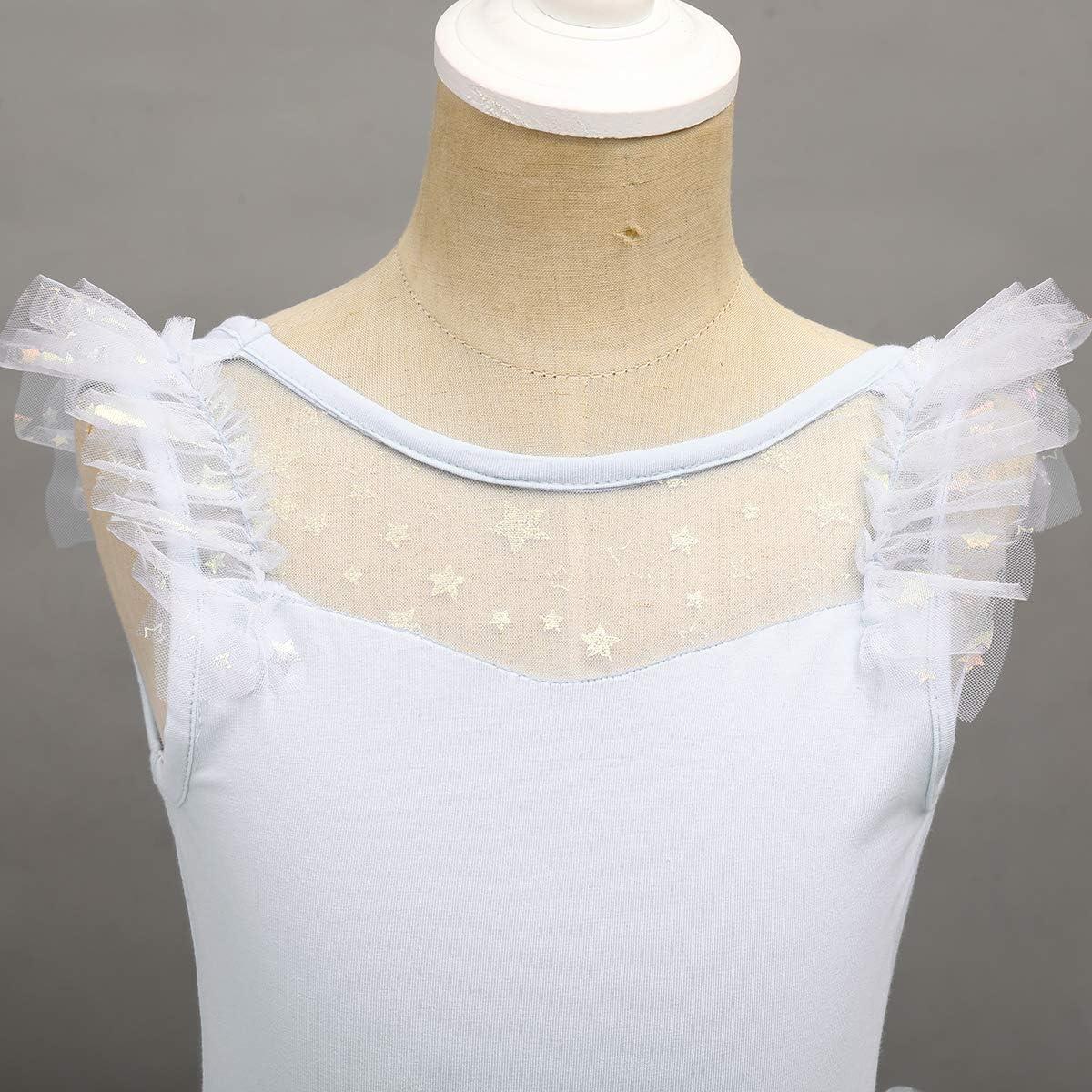 IDOPIP Girls Glitter Star Tutu Skirted Leotard Sequin Ruffle Sleeve Ballet Dance Dress Ballerina Dancewear Gymnastics Costume(White)