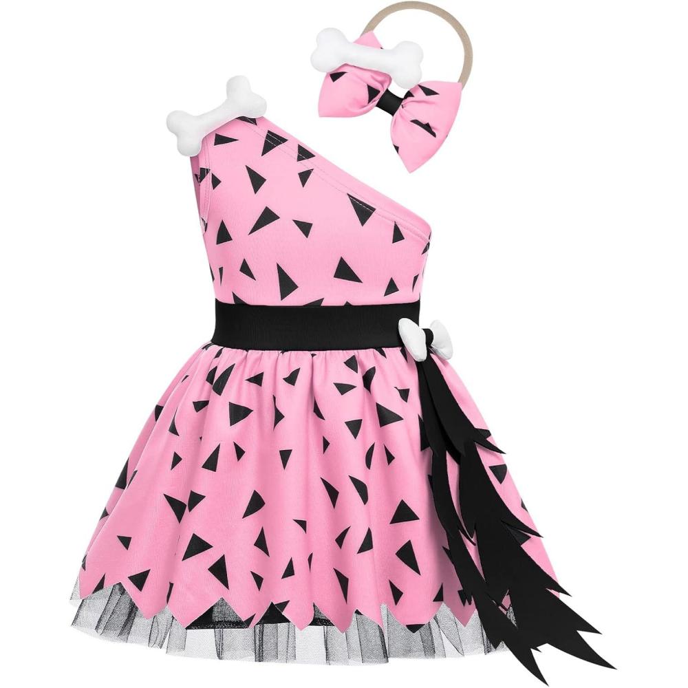 IDOPIP Kids Baby Halloween Costume Caveman Cavegirl Stone Age Outfit for Girl Boy Halloween Cosplay Dress Up Photoshoot 6M-6T(Pink – Girl)