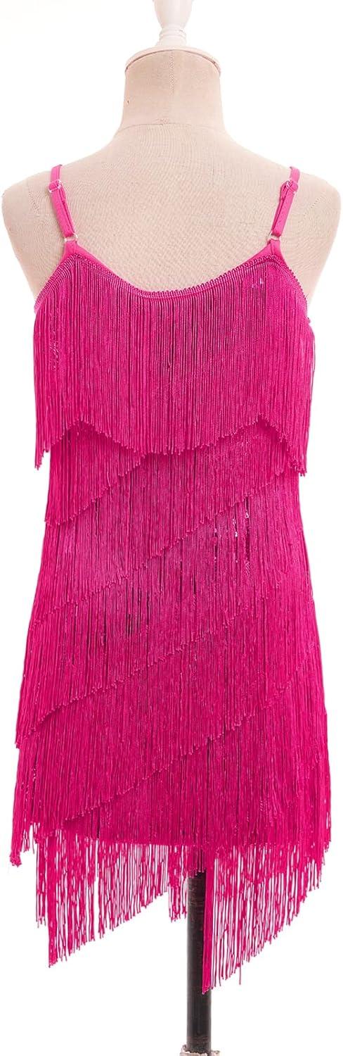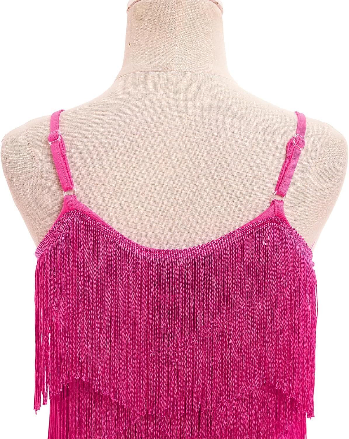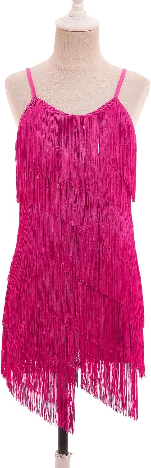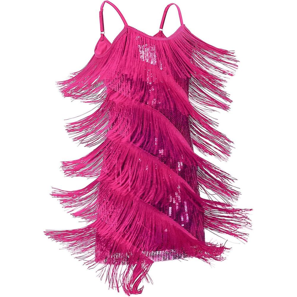 IDOPIP Kids Girls 1920s Flapper Dress Tassels Sequins Fringe Latin Dance Dress Gatsby Halloween Party Ballroom Dance Costumes(Hot Pink)