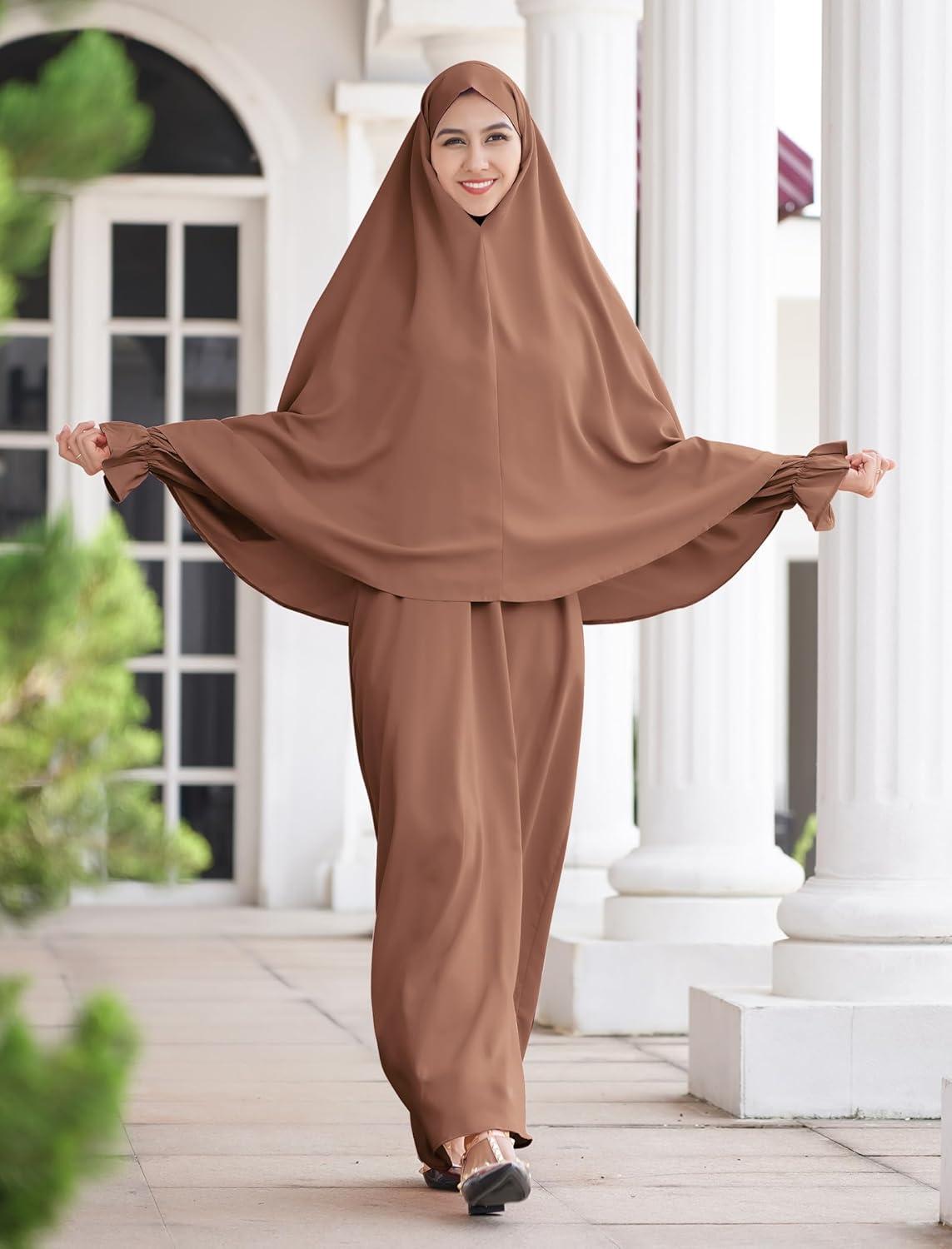 Get a free gift with your purchase of IDOPIP Muslim Abaya for Women One Piece Long Sleeve Islamic Prayer Dress Maxi Kaftan Robe Prayer Clothes with Khimar Hijab(Brown). Limited quantities available!