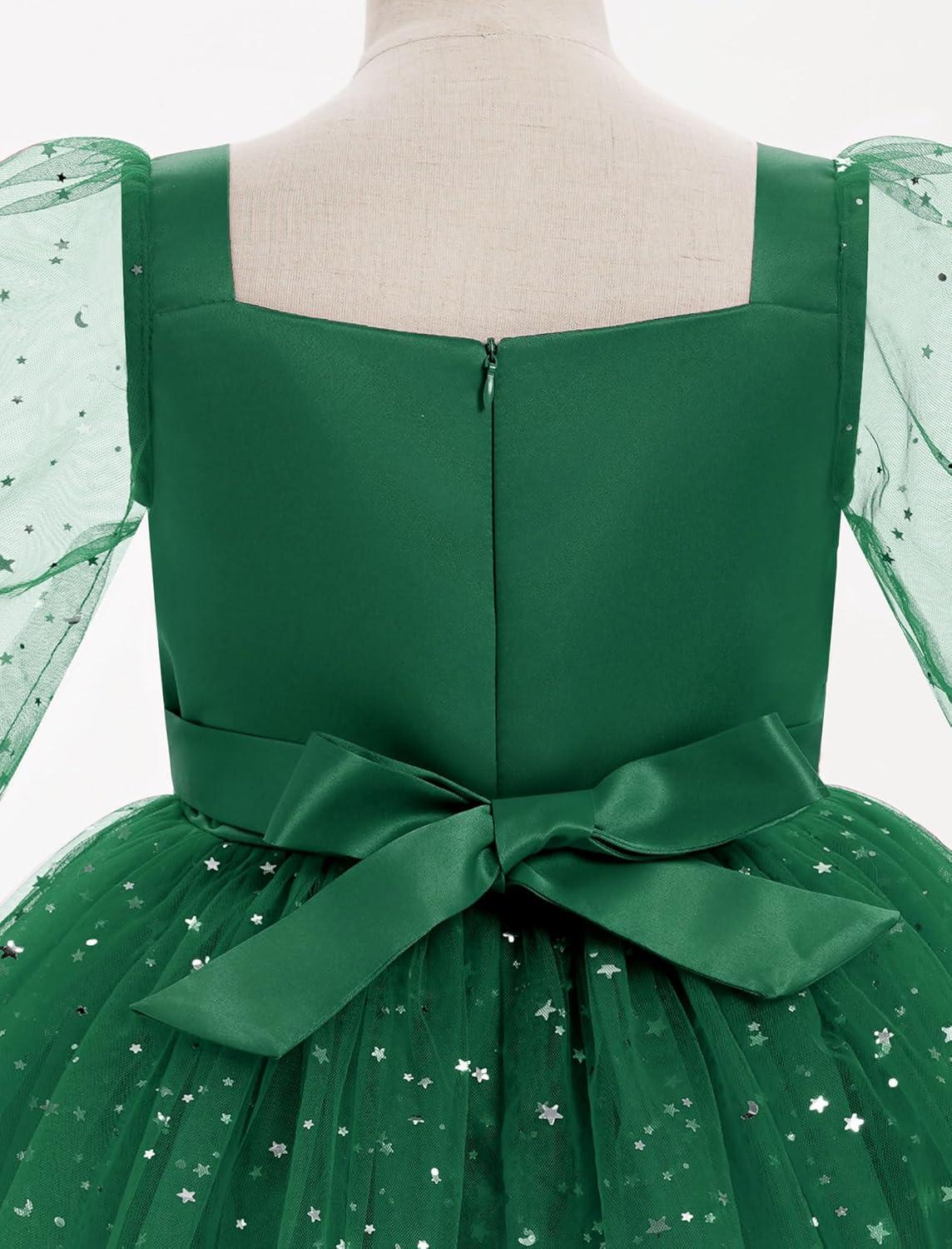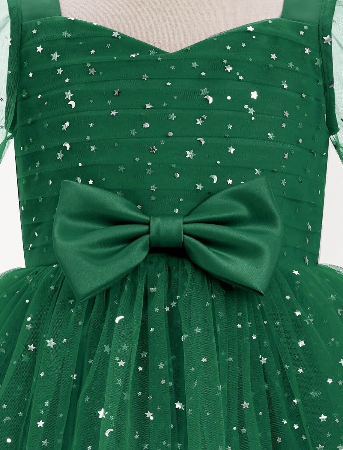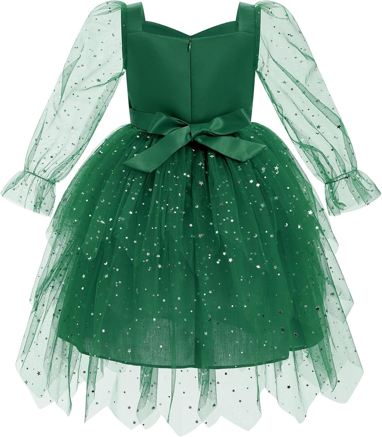 imageIDOPIP Toddler Baby Girls Velvet Tutu Dress Bowknot Ruffle Tulle Princess Christmas Birthday Party Dress Fall Winter ClothesEmerald Green  Star