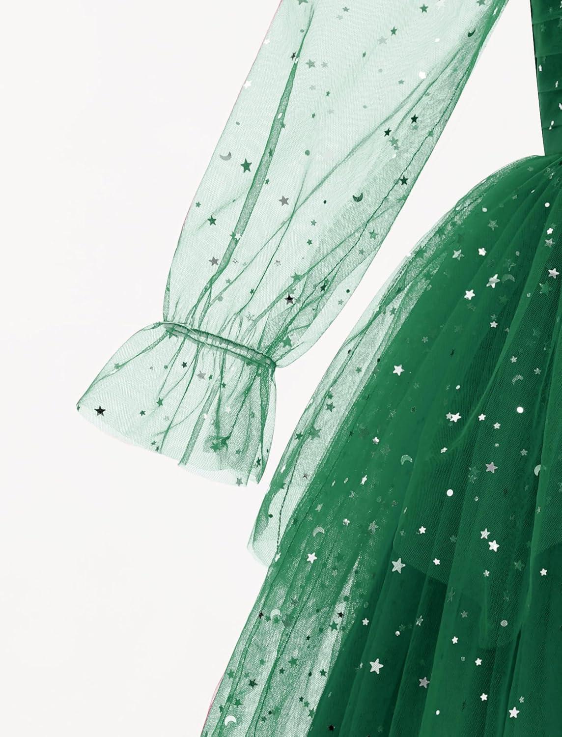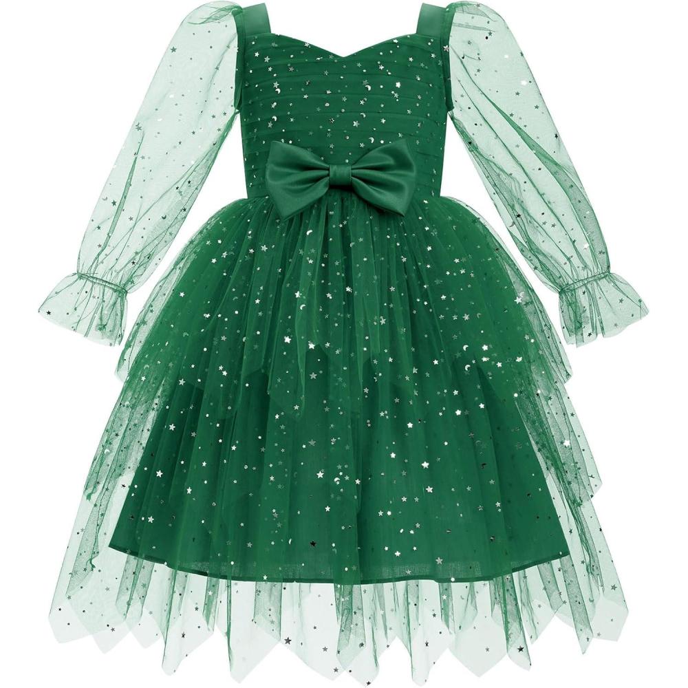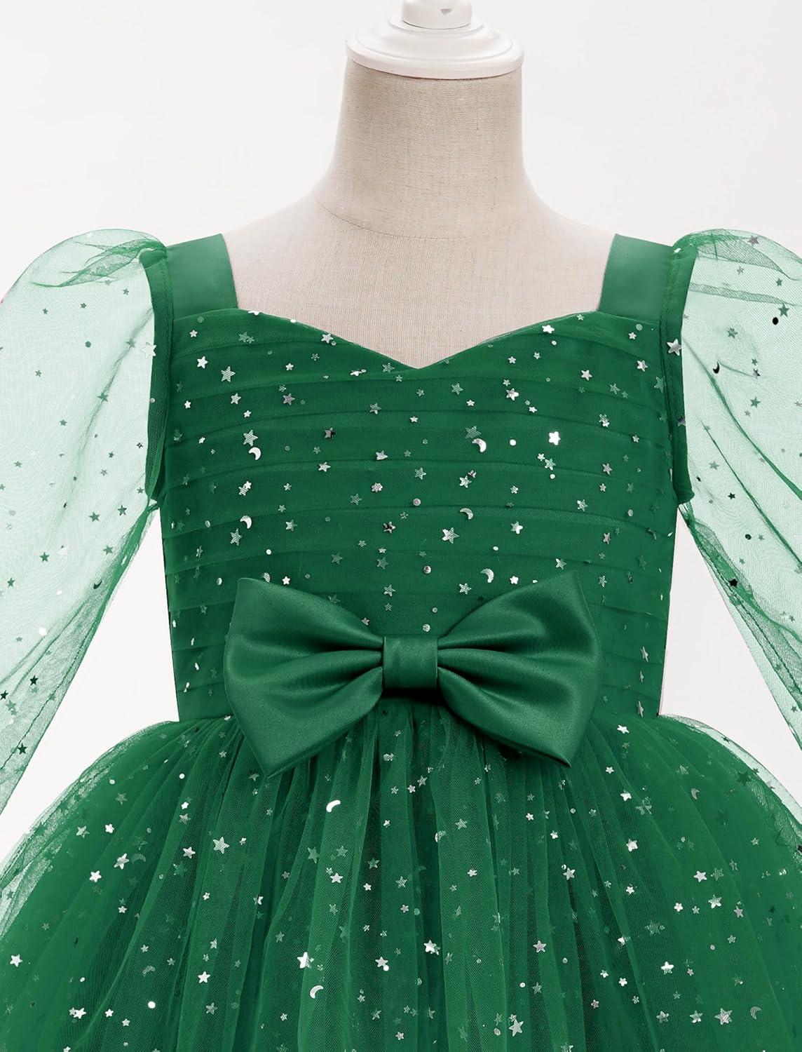 imageIDOPIP Toddler Baby Girls Velvet Tutu Dress Bowknot Ruffle Tulle Princess Christmas Birthday Party Dress Fall Winter ClothesEmerald Green  Star