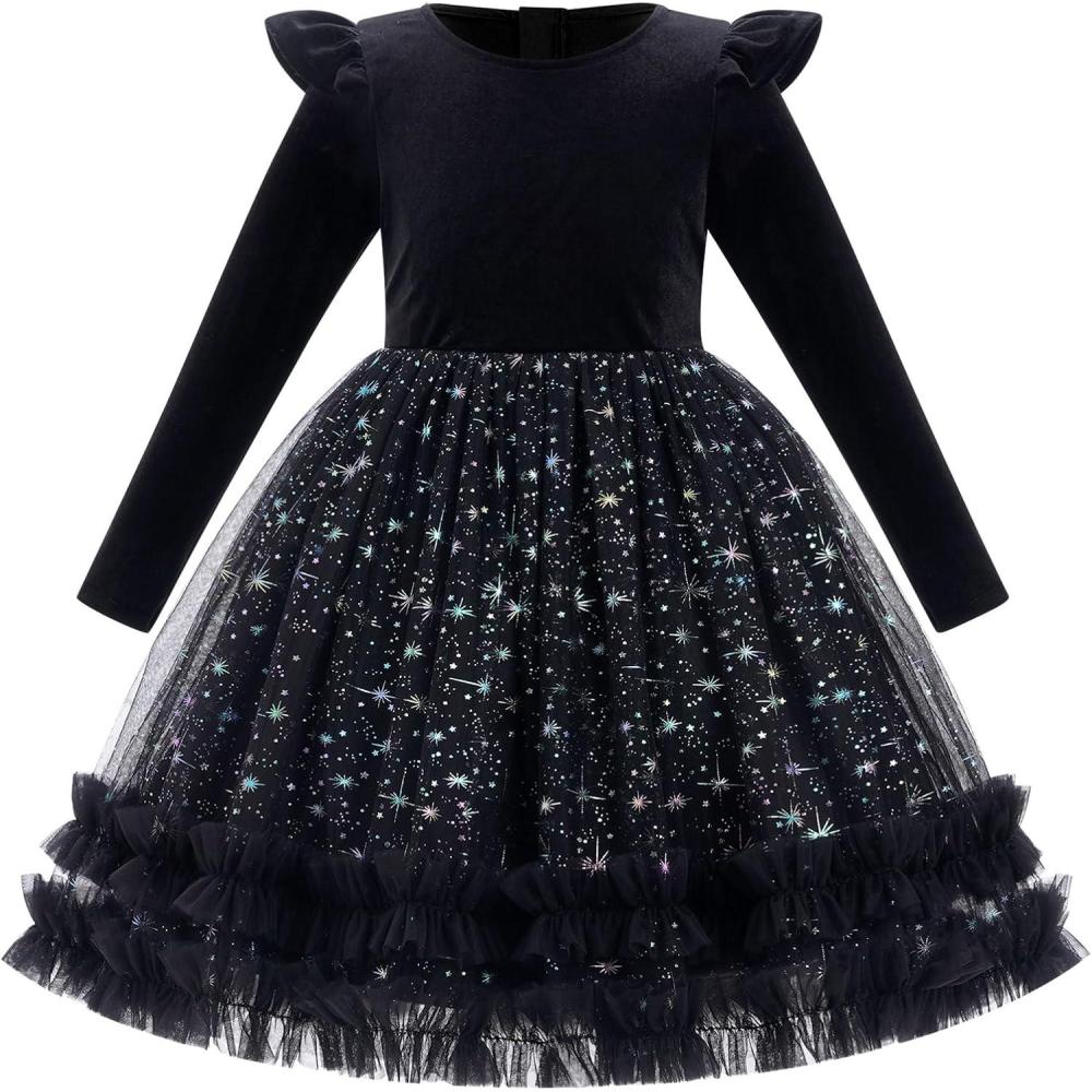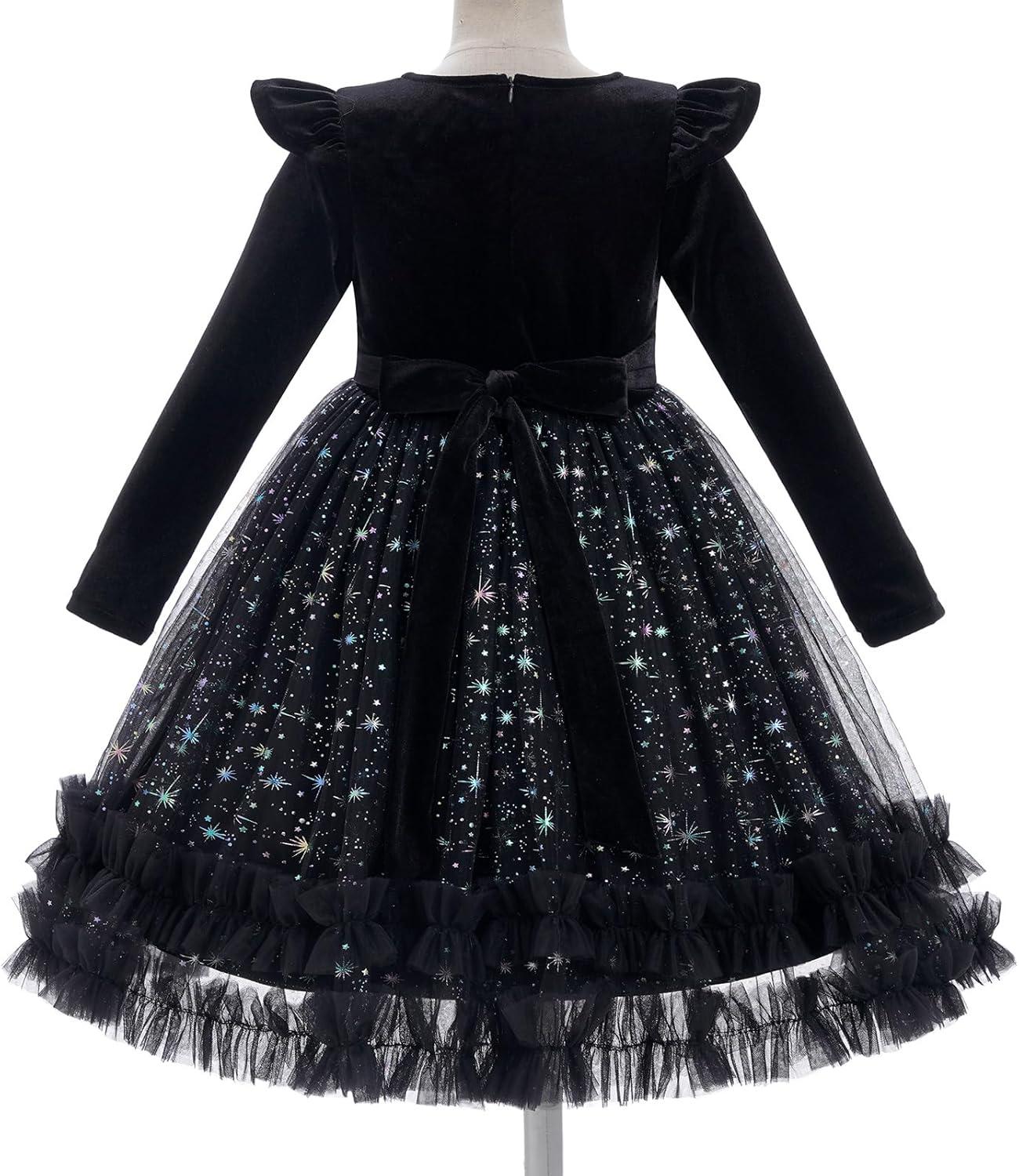 IDOPIP Toddler Baby Girls Velvet Tutu Dress Long Sleeve Princess Christmas Birthday Party Wedding Dresses Fall Winter Clothes(Black – Sequin)