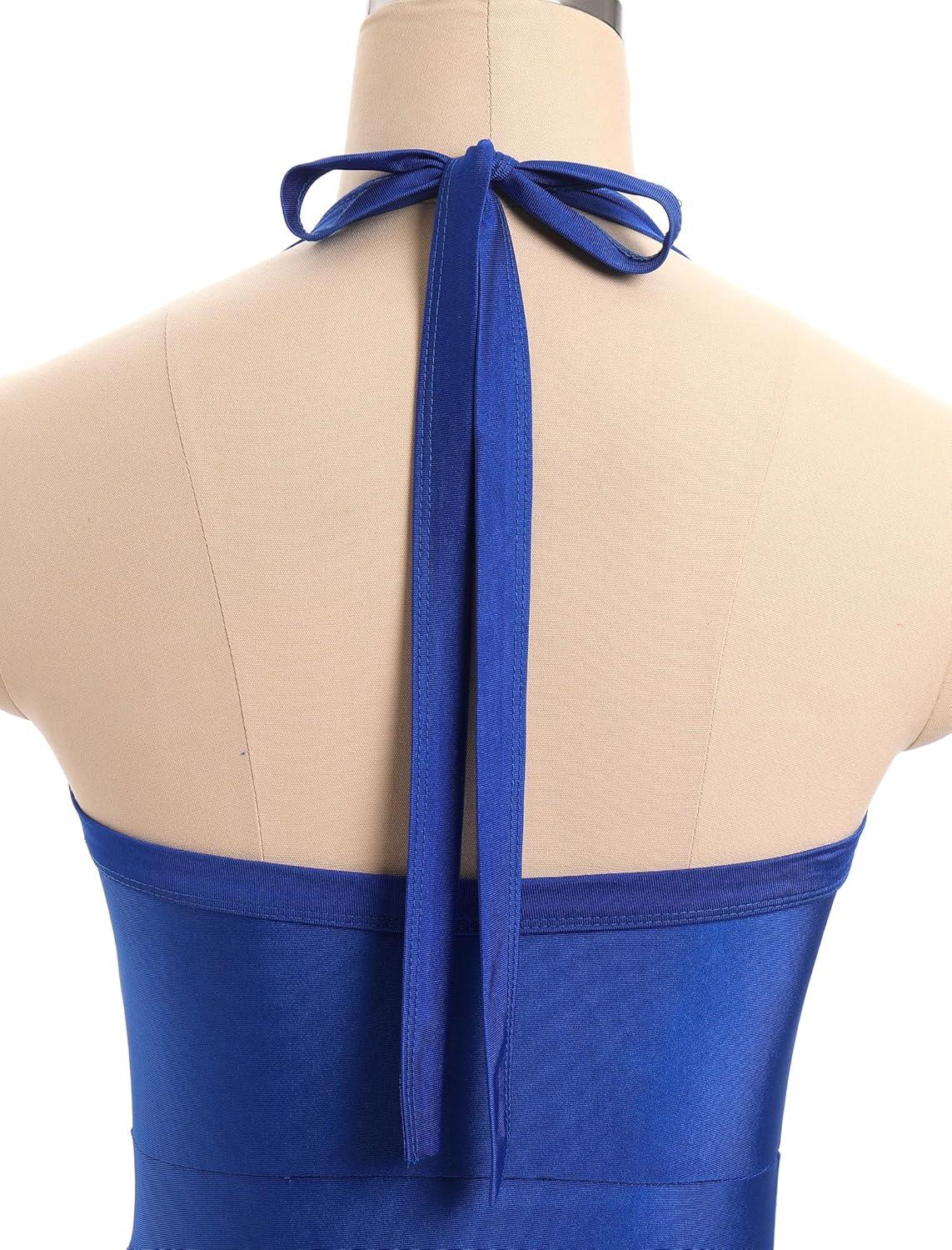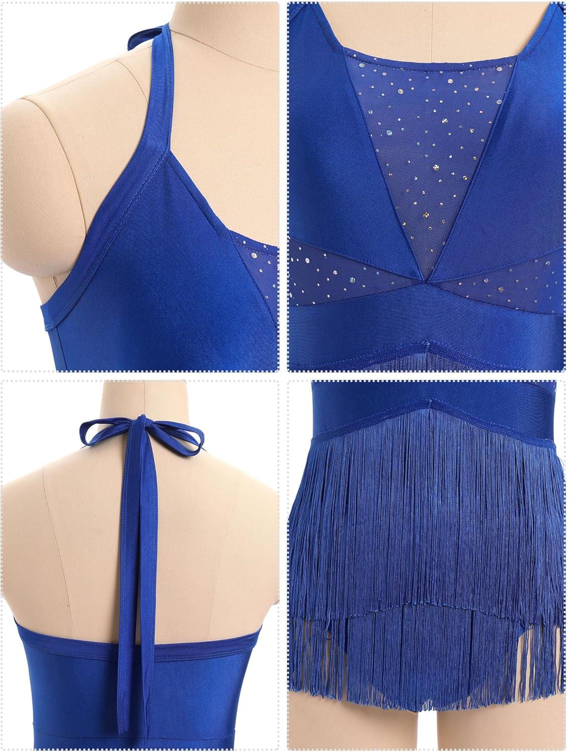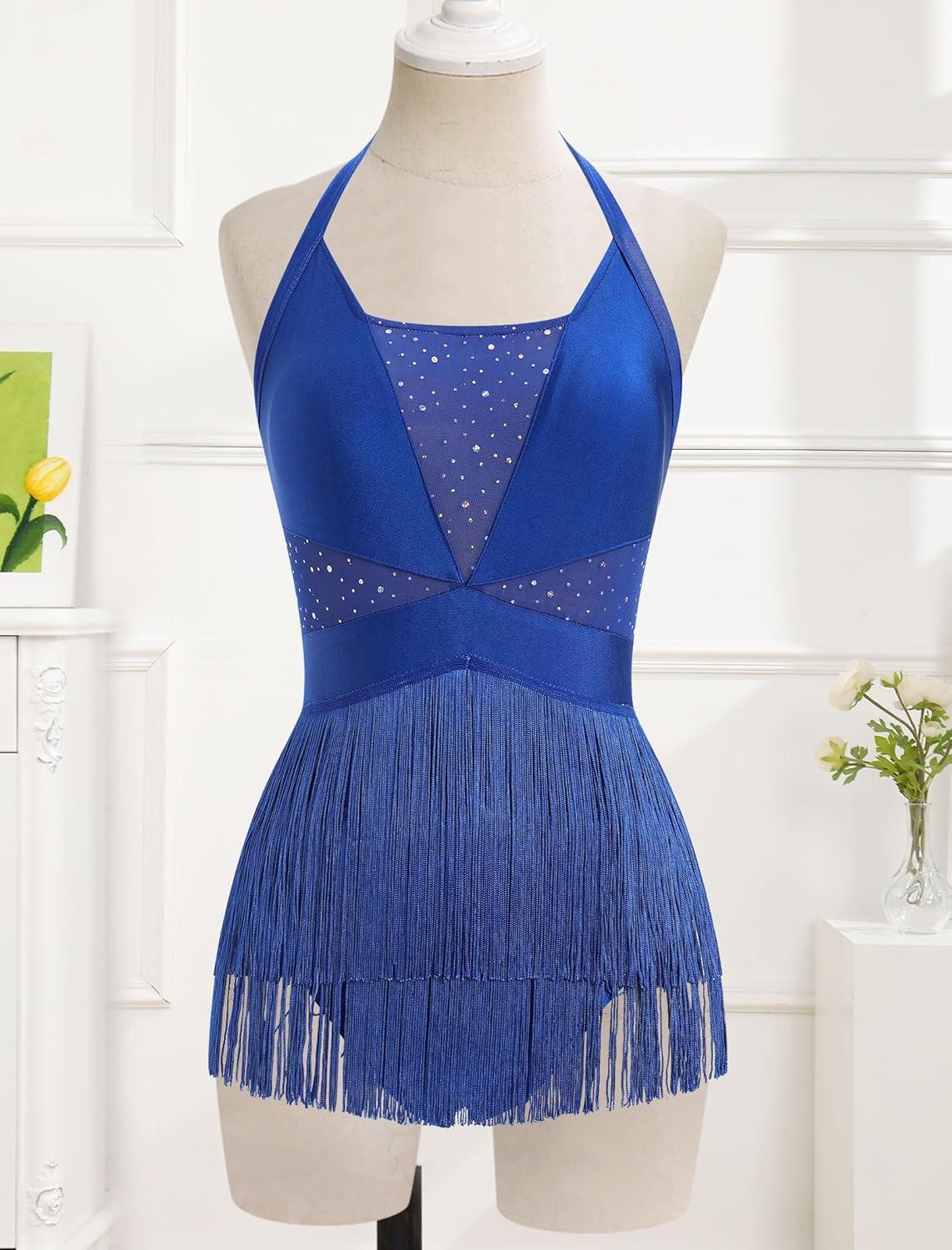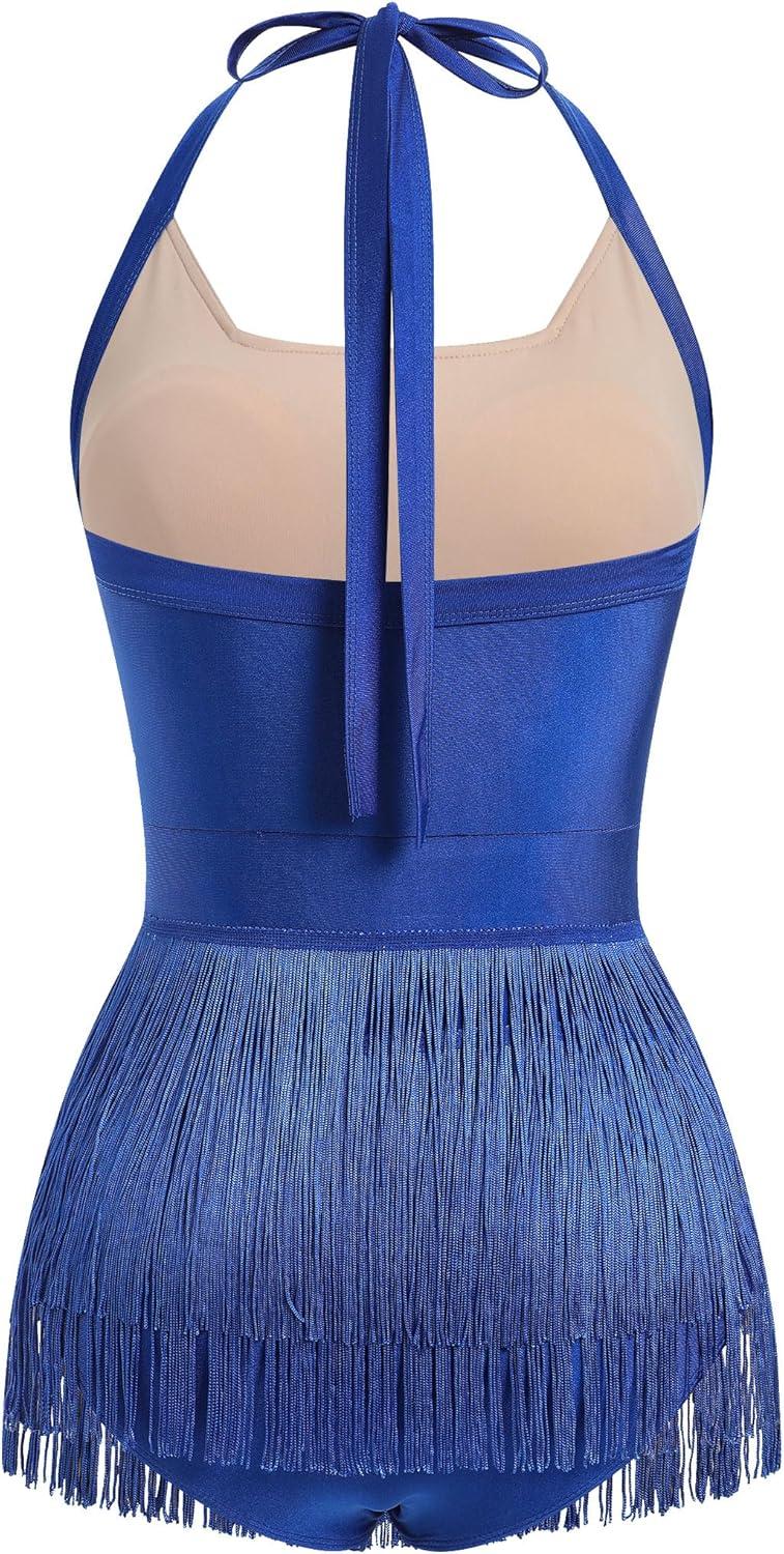 IDOPIP Women Sequin Fringe Bodysuit Sparkly Tassel Romper Jumpsuits Halter Latin Dance Dress Sexy Festival Rave Party Outfits(Royal Blue)