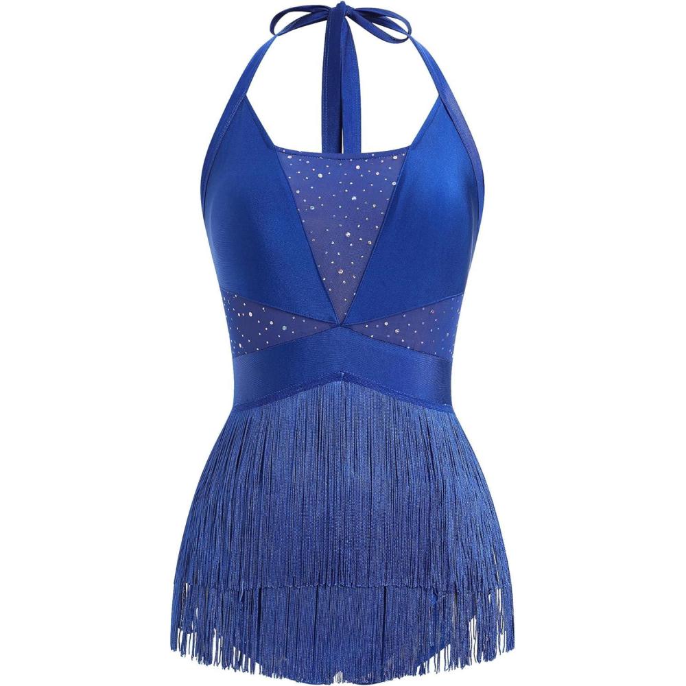 imageIDOPIP Women Sequin Fringe Bodysuit Sparkly Tassel Romper Jumpsuits Halter Latin Dance Dress Sexy Festival Rave Party OutfitsRoyal Blue