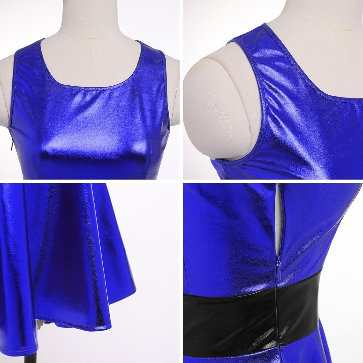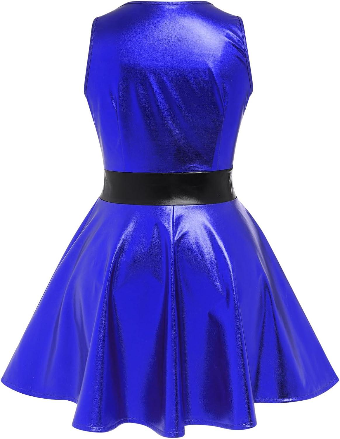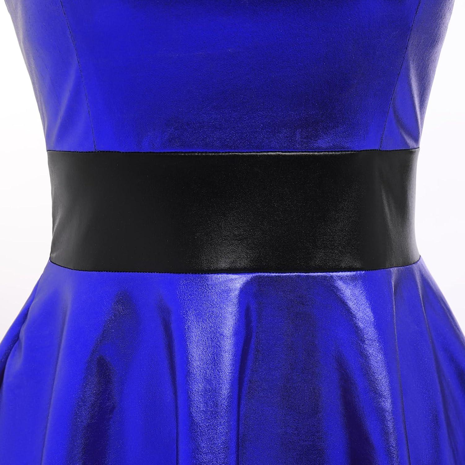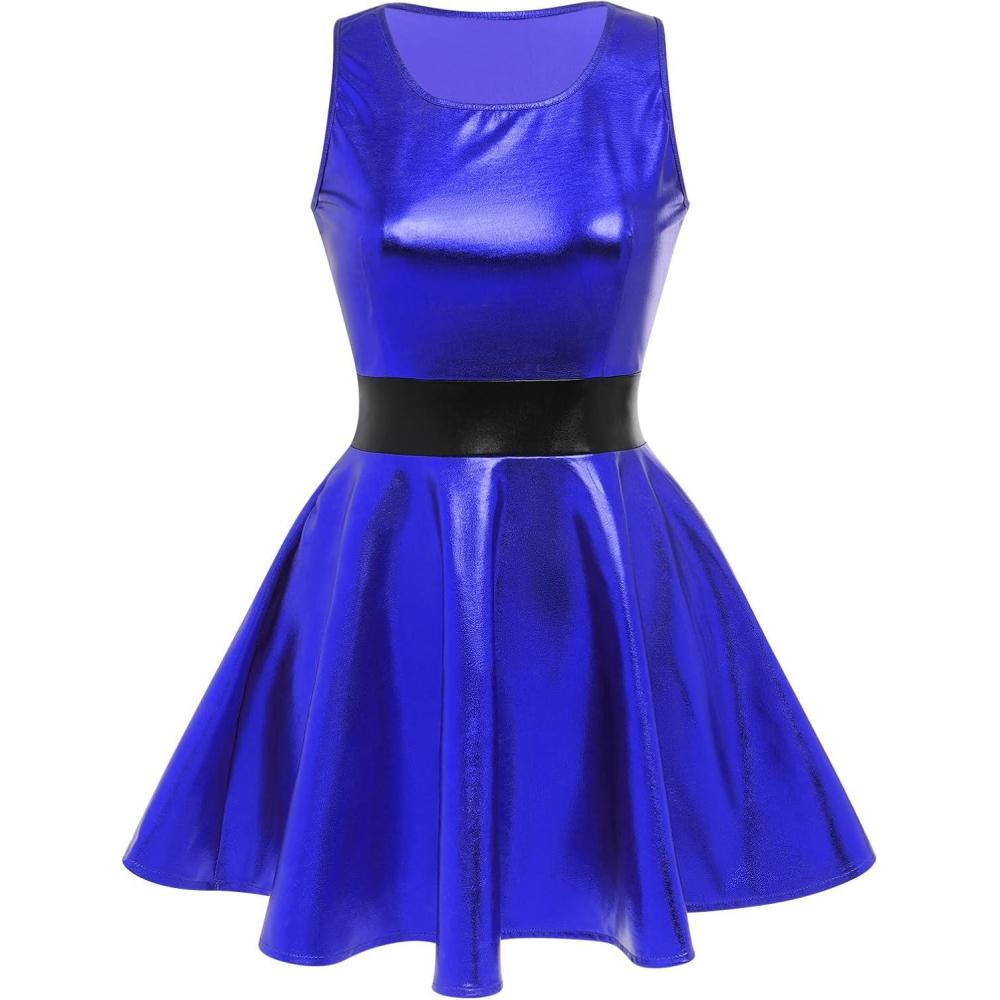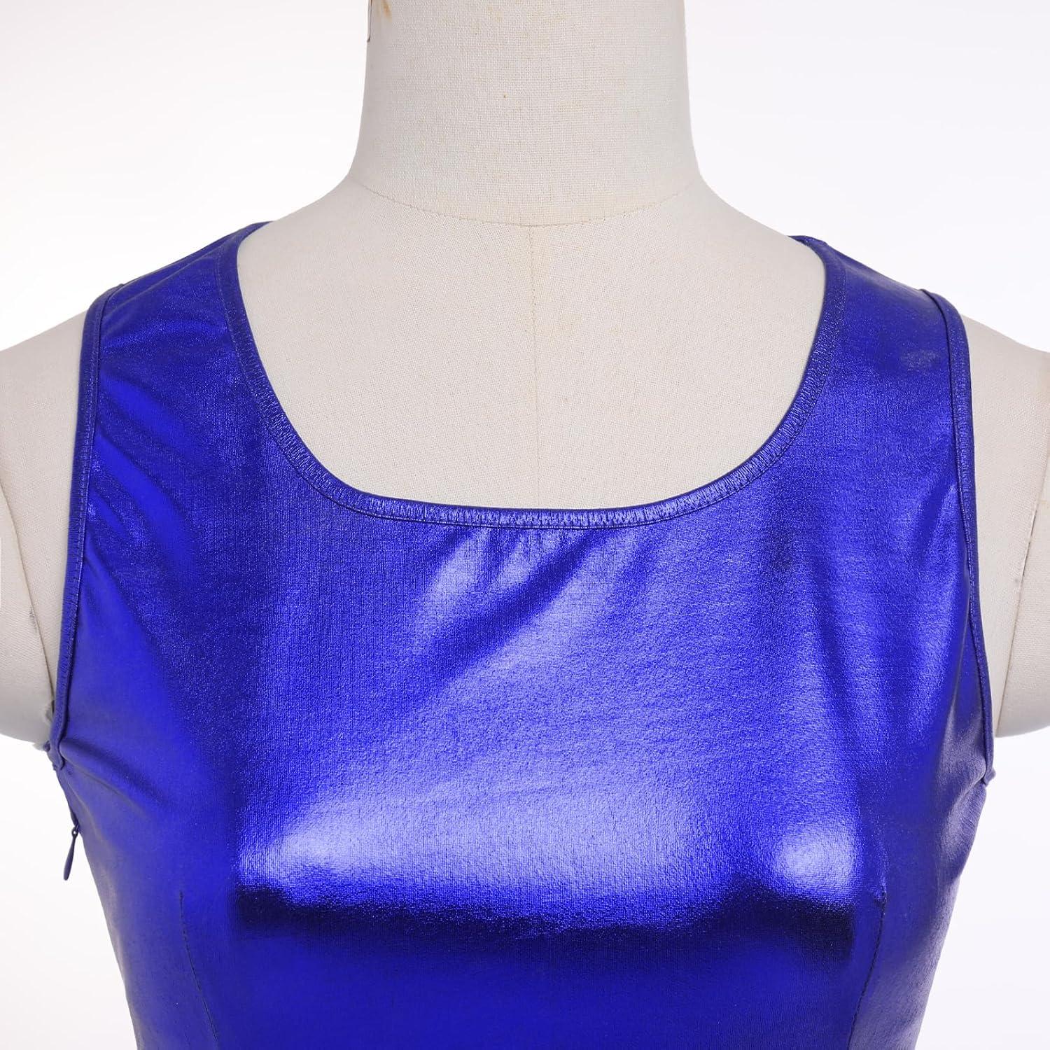 IDOPIP Women’s Shiny Metallic Dress Sexy Sleeveless Skater Mini Dress Holographic Party Rave Dance Clubwear Halloween Costume(Royal Blue)